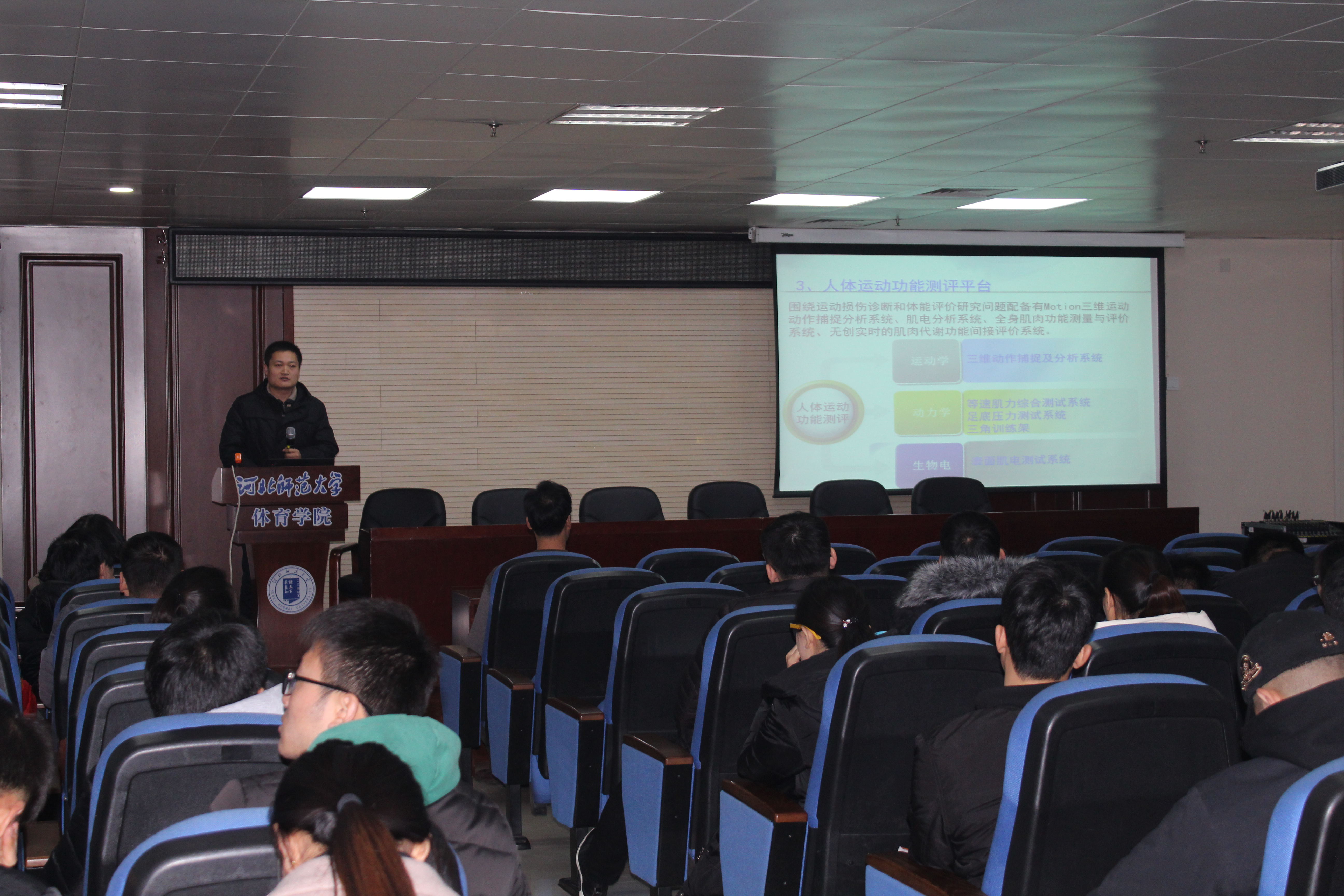 12月21日上午9:00,今年会jinnian官网在学生讲堂举行了第四期学术沙龙活动暨河北省人体运动生物信息测评重点实验室功能介绍。实验室霍洪峰老师应邀作报告。部分教师和一年级研究生参加了本次学术交流活动。
