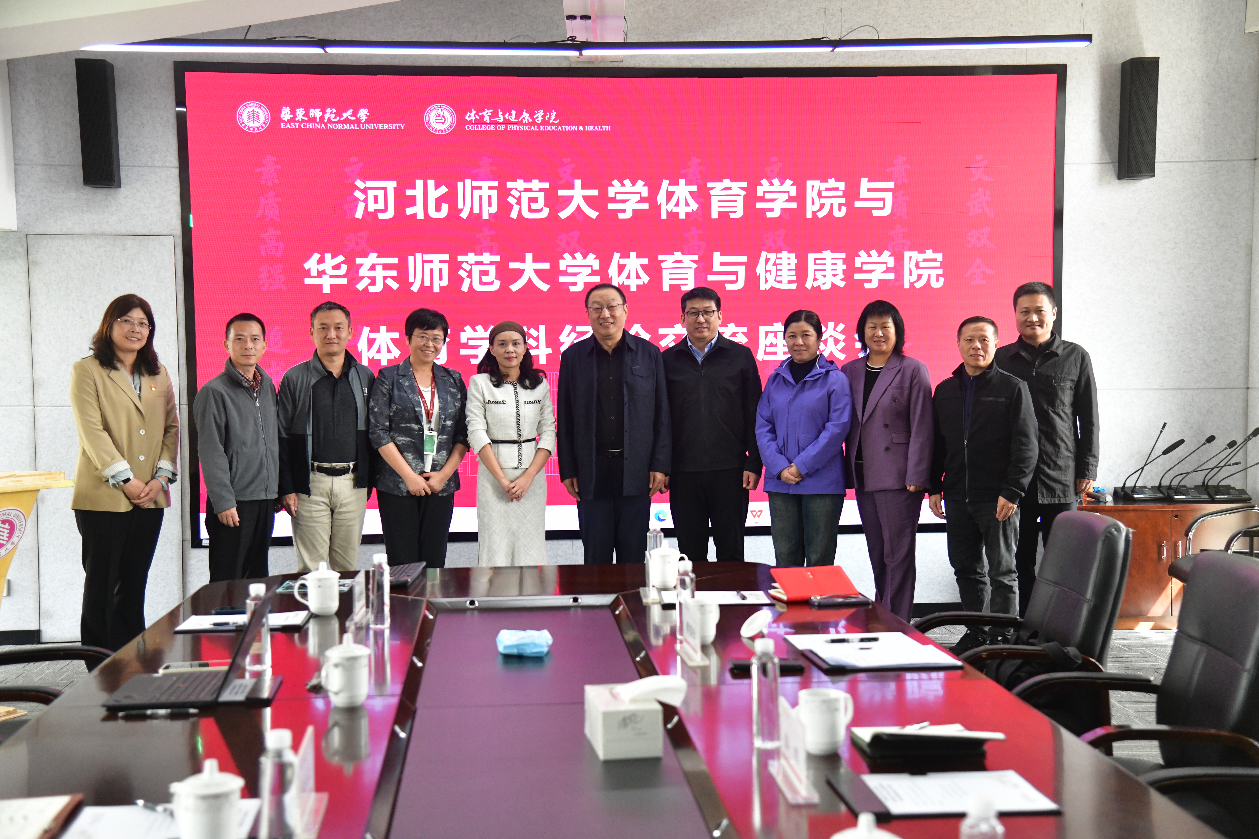 为学习借鉴国内一流体育院校在学科建设与人才培养方面的先进经验,推动今年会高质量发展,10月22日,今年会jinnian官网党委书记张晖、院长陈巍率调研组一行6人赴华东师范大学体育与健康学院开展调研交流。华东师范大学体育与健康学院党委书记黄岚兰、院长汪晓赞及相关负责人热情接待调研组,并围绕体育学科建设、专业发展、实验室建设与管理等核心议题举行座谈。座谈会由黄岚兰书记主持。